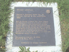 Plaque in front of the house reads: Chicago Landmark Palilser's Cottage Home No. 35, Palilser, Palilser & Co., architects 1882.