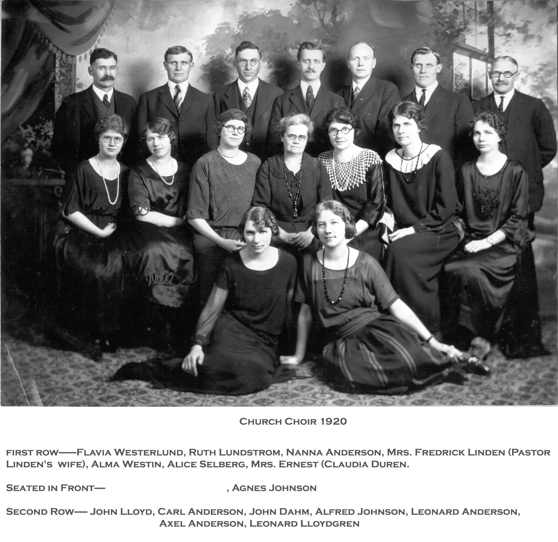 If any one knows who the lady sitting on the floor next to Agnes Johnson please contact the church office.