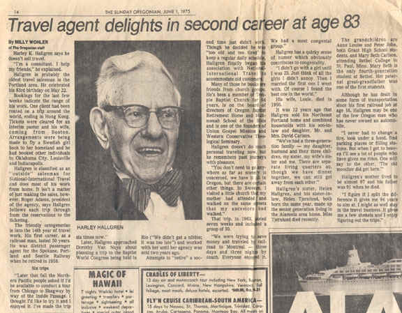This article was was written in the Sunday Oregonian Newspaper in Portland, Oregon by Milly Wohler of The Oregonian Staff, dated June 1, 1975, and was given by the Strandberg family. Since the article is hard to read it has been retyped.