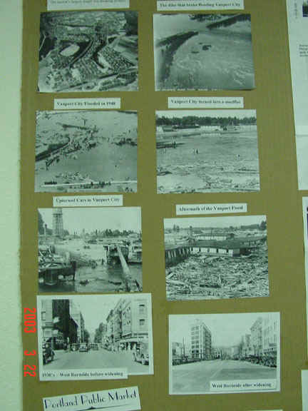 These photos were on display at the 20's and 30's party at Church on March 22, 2003. The two bottom Photos had nothing to do with Vanport. It is the before and after of the widening of West Burnside Street in Portland. For more information and photos on the Vanport Flood and the City of Vanport Click Here.